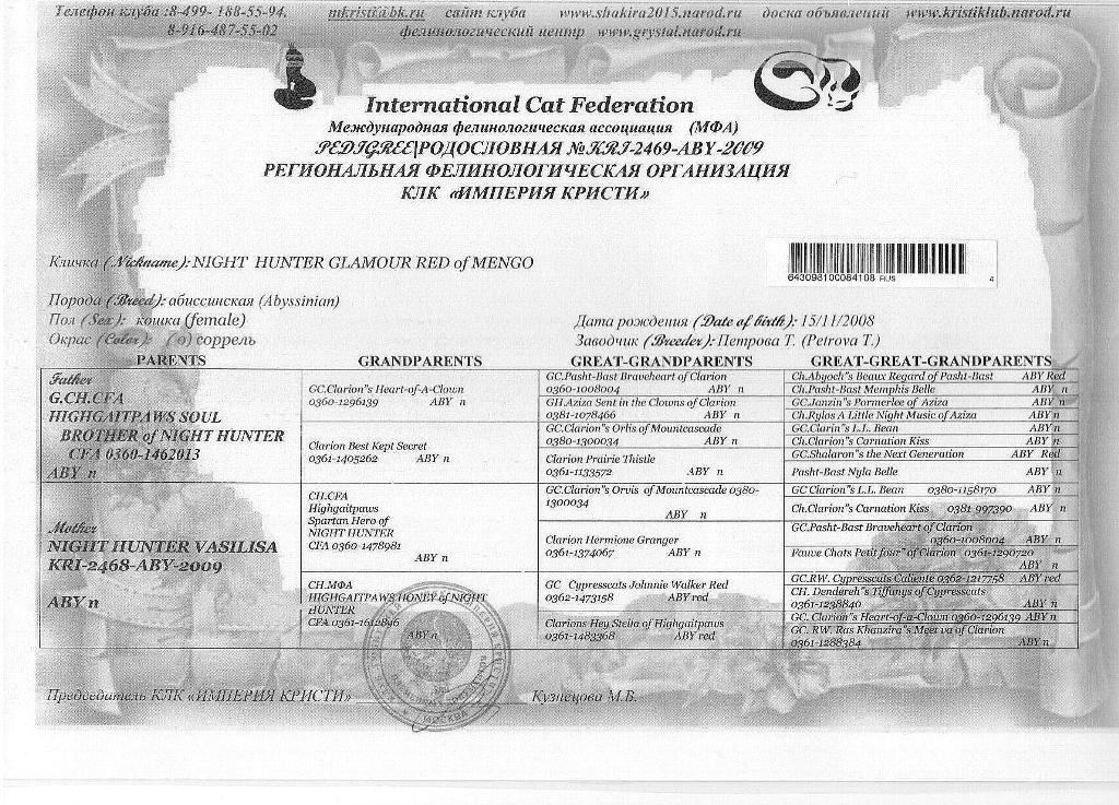 Rodowody naszych kotów hodowlanych.