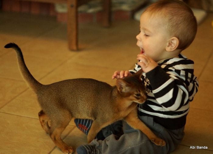 Decyzja o hodowli abisyńczyków zapadła, gdy dowiedzielismy sie, że w Szwecji i USA kot abisyński jest uznawany za rasę najbardziej odpowiednią do felinoterapii dzieci.